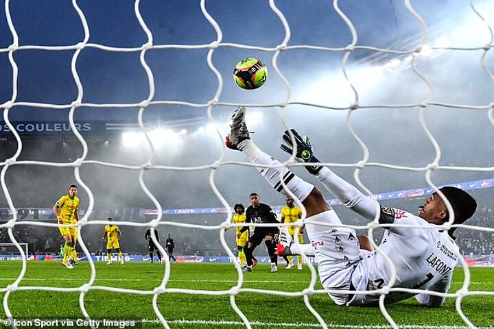 Nantes keeper Alban Lafont kept his team afloat with several saves as the visitors struggled to get into PSG's half in a one-sided opening half.