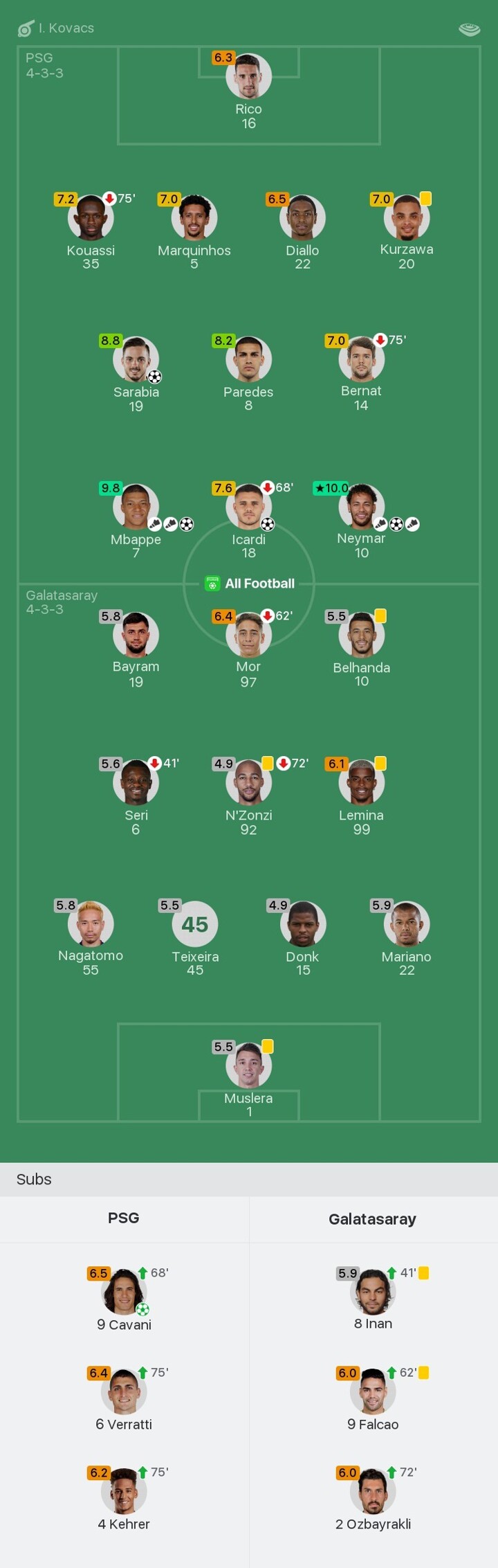 We bring you the player ratings for PSG vs Galatasaray as Neymar becomes Man of the Match with a rating of 10.0.