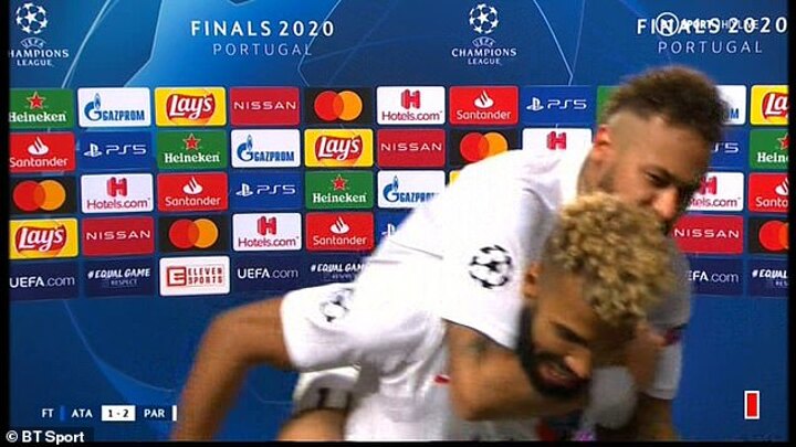 In Choupo-Moting's post-match interview the striker was jumped on by his team-mate Neymar as they celebrated their win.
