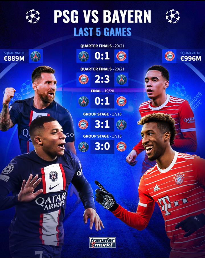 PSG vs Bayern Munich, last 5 games (Transfermarkt) : It's almost too close to call!What is your predicted score? Copyright Declaration
