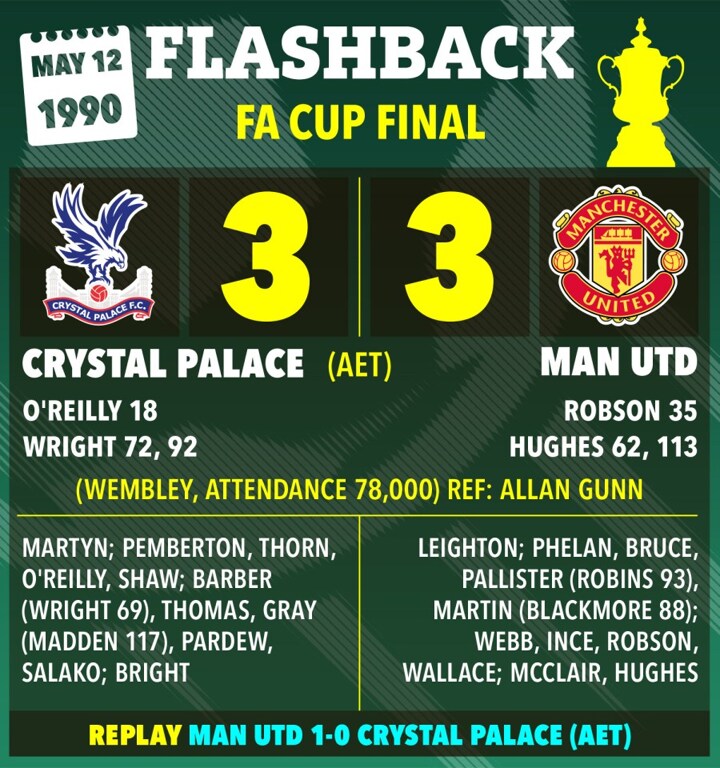 The match was a breathless 3-3 draw - O’Reilly heading Palace in front, before Bryan Robson and Mark Hughes turned the match. And then came Wright.