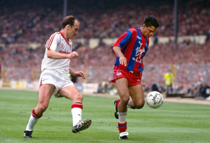 “The goal that finished Jim Leighton’s United career,” Salako recalls, “I ran so far to celebrate with the Palace fans that I ended up with cramp.”