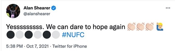 Legendary Newcastle striker Alan Shearer led the celebrations on social media.
