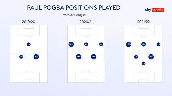 With both Solskjaer and Ralf Rangnick preferring a 4-2-3-1 formation in recent years, though, it has not been possible for Pogba to operate in his favoured role. At the base of the midfield in that system, Scott McTominay and Fred - or at times Nemanja Matic - have been trusted more than him to remain disciplined and regularly shield a four-man defence. The No 10 position Pogba once thrived in at times under Solskjaer has also been filled by Bruno Fernandes since his arrival in January 2020.