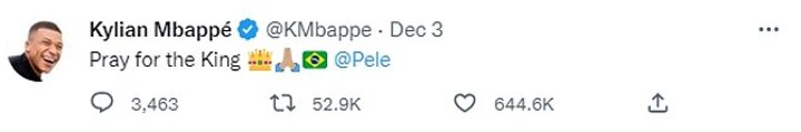 Pele is spending Christmas in The Sao Paulo's Albert Einstein Hospital and there has been an outpouring of emotion in recent weeks, with star players like Neymar and Kylian Mbappe leading the well wishes to 'the King'.
