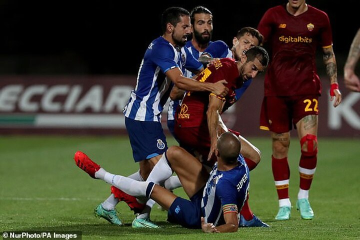 Roma winger Henrik Mkhitaryan was his latest victim in the high-stakes atmosphere of a pre-season friendly, sparking a mass brawl as the Armenian's furious team-mates charged the Portugal veteran. Somehow Pepe went unpunished, while Mkhitaryan saw yellow for his reaction.
