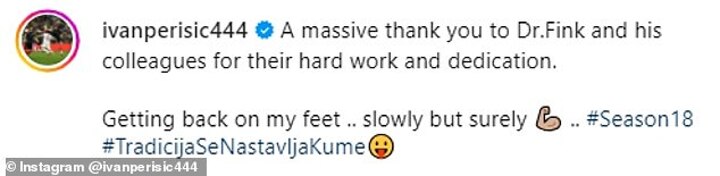 Perisic wrote: 'A massive thank you to Dr. Fink and his colleagues for their hard work and dedication.
