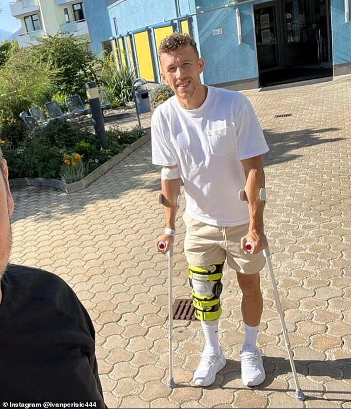 Tottenham Hotspur and Croatia star Ivan Perisic has been pictured on crutches after undergoing surgery for an ACL injury on Monday.