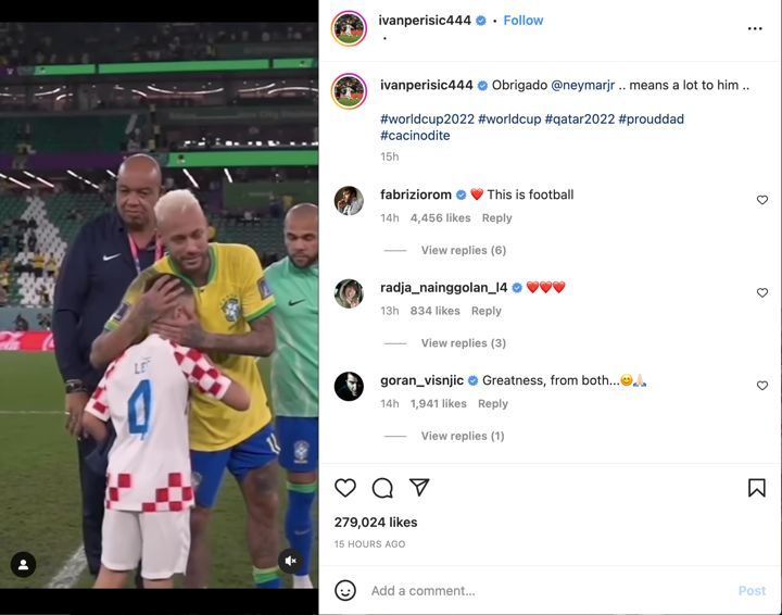 Perisic thanked Neymar for the hug and said it meant a lot to his son.