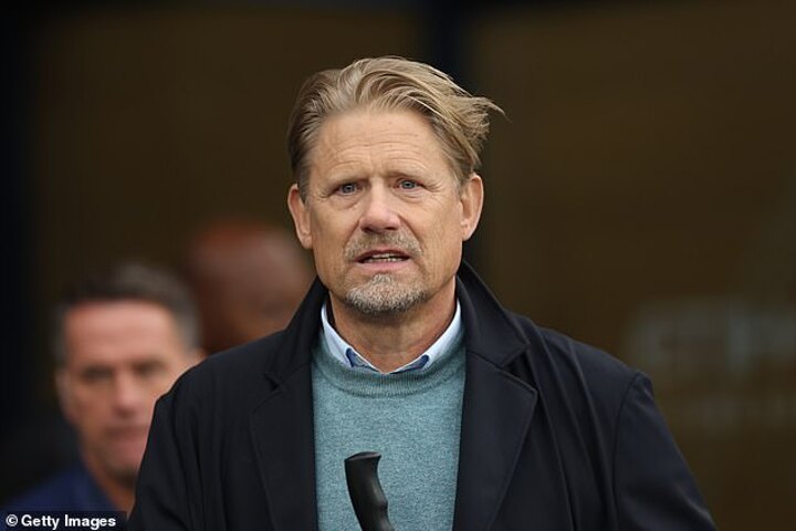 'Thank you for playing that,' Schmeichel began, chuckling away.