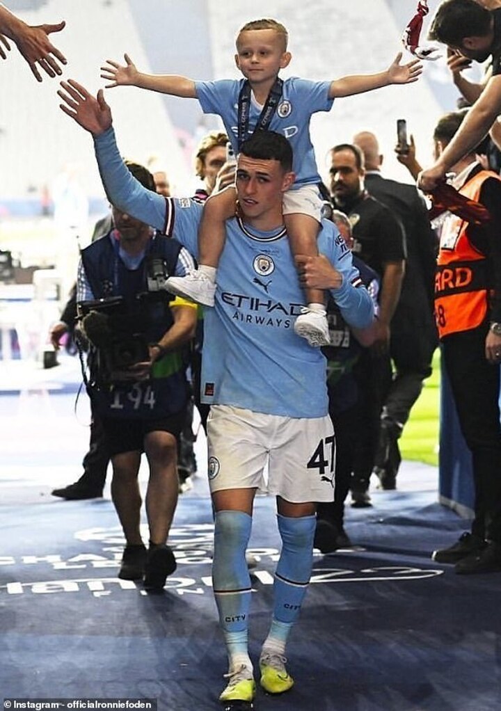 Foden has been happy to see his eldest child enjoy spending time with his City team-mates who regularly interact with the youngster in and around the club and after matches.