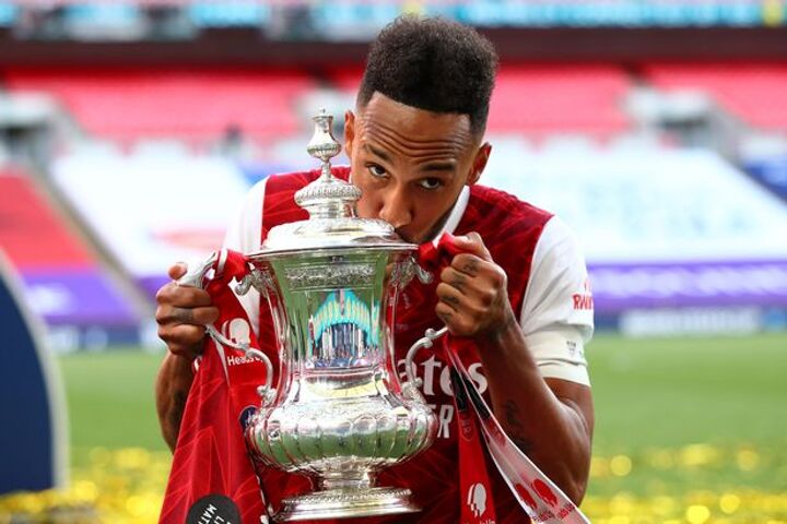 The Gabon forward struck twice to cancel out Christian Pulisic's opener at Wembley yesterday and lift his first trophy as Arsenal captain.