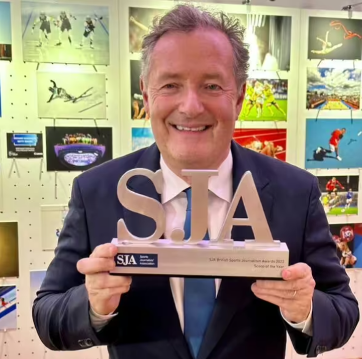 Piers Morgan took to the stage on to accept the Sports Journalist Association's Award for Scoop of The Year on Monday.