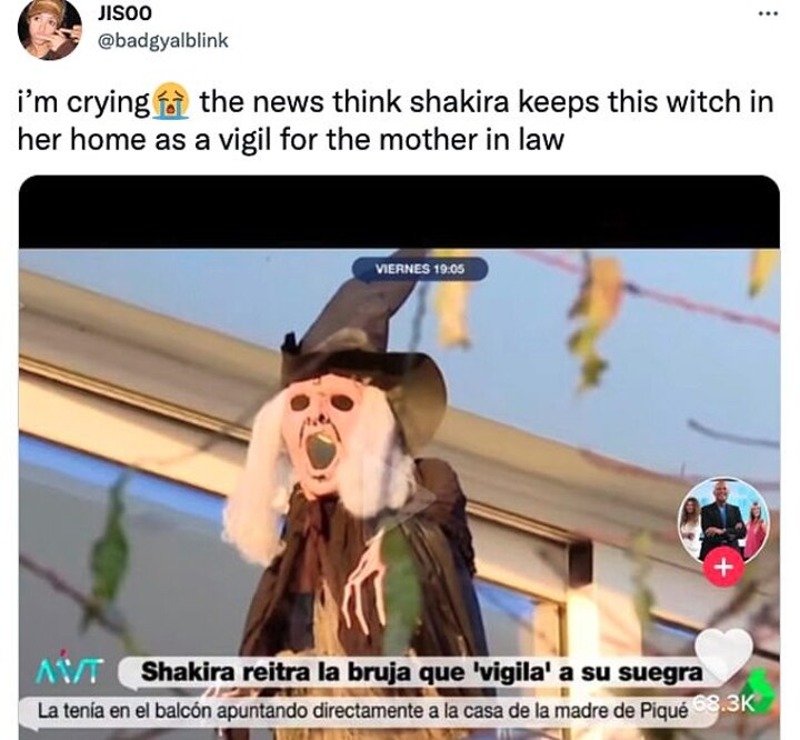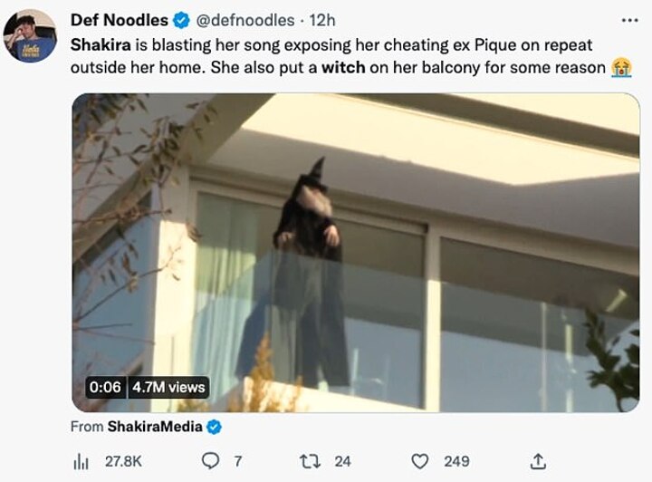 'Shakira apparently has a witch figure on the balcony facing her MIL's home? Go on girl.'