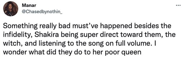 Another said: 'Something really bad must've happened besides the infidelity, Shakira being super direct toward them, the witch, and listening to the song on full volume.