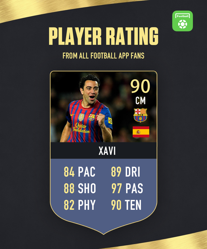 Hello everyone, welcome to - Daily Player Rating! You could be the judge and rate one player every day at 10:30 CET. The results will be declared in the form of Fut Card tomorrow. We released the rating of Xavi yesterday. He got 90 total points with highest 97 in passing. The detailed results are as follows: