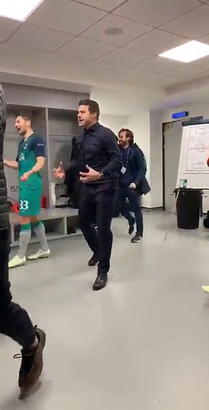 A video has emerged of Spurs' raucous celebrations at full-time after a night of extreme emotions.