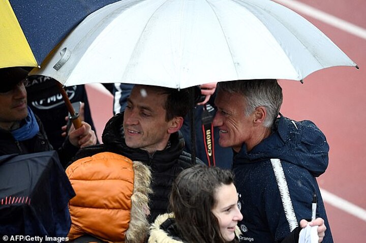 The weather in northern France was damp and uninspiring but that did not suppress the positive feeling. Even coach Didier Deschamps joined in the photocall, albeit from under the protection of an umbrella.
