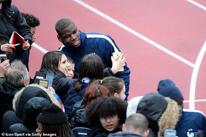 There was a decent crowd of fans in attendance and Pogba delighted one group of them by posing for a selfie.