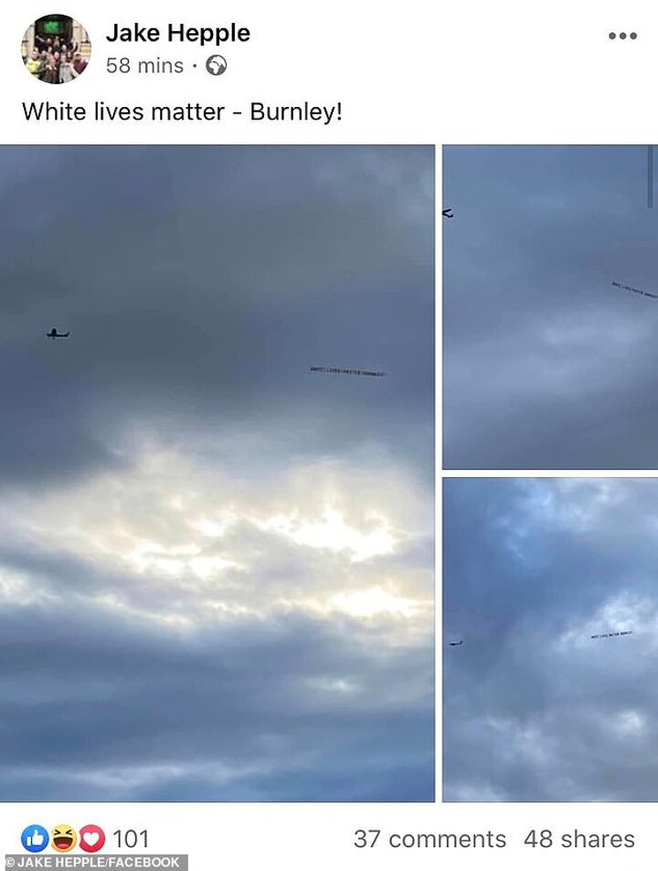 Last night's aerial display reading 'White Lives Matter Burnley' appeared to mock the movement, which is fighting against racism.