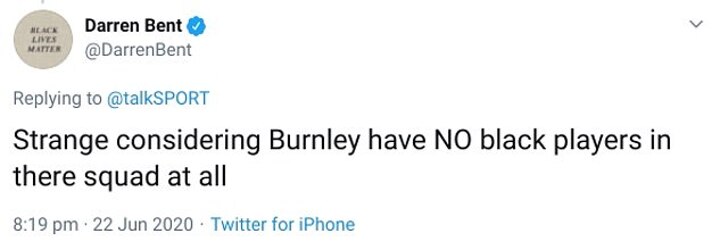 'Burnley FC have apologised for an idiotic minority who want a race war. Well done the Premier League for keeping on highlighting injustice.
