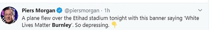 MailOnline columnist Piers Morgan tweeted: 'A plane flew over the Etihad stadium tonight with this banner saying 'White Lives Matter Burnley'. So depressing.'