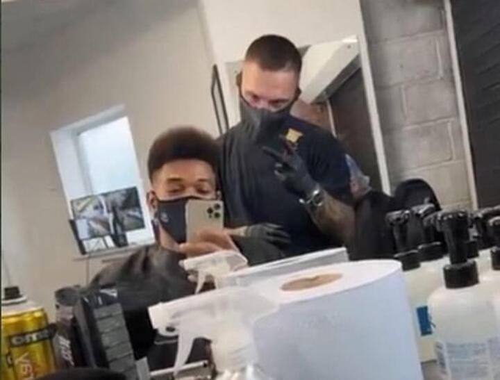 However the Premier League forward posted a picture to his 110k followers of him sat in a salon chair next to Mr Baxter, with the pair posing in face masks.