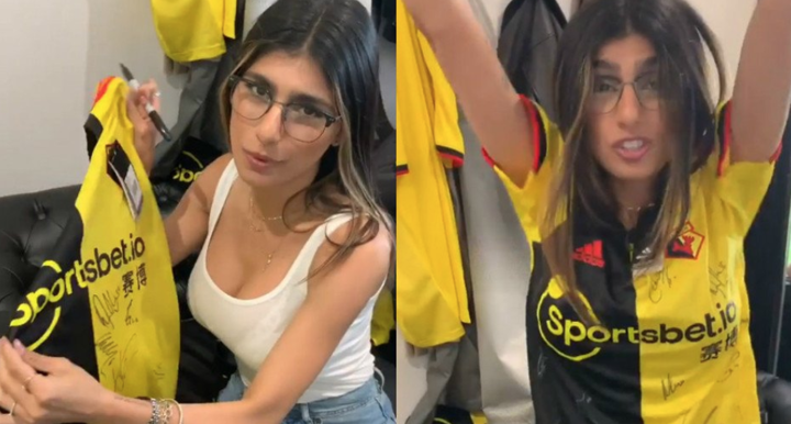 Pornhub legend Mia Khalifa was at Vicarage Road on Sunday to witness Watford's Premier League clash with Arsenal.