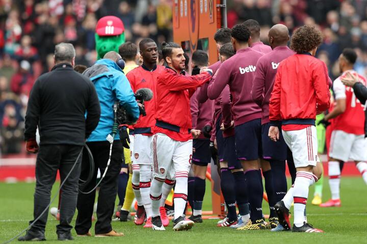 Arsenal captain Granit Xhaka was seen patting West Ham's Angelo Ogbonna on the back when the two teams met on Saturday afternoon, suggesting players would choose to find a way around simply shaking hands.