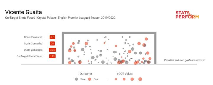 Instead, using Opta's Expected Goals model, the quality of those shots faced is more forensically analysed. Players can then be ranked according to how much the average goalkeeper would be expected to save, given the quality of attempts faced. This is where Guaita's form is further distinguished.