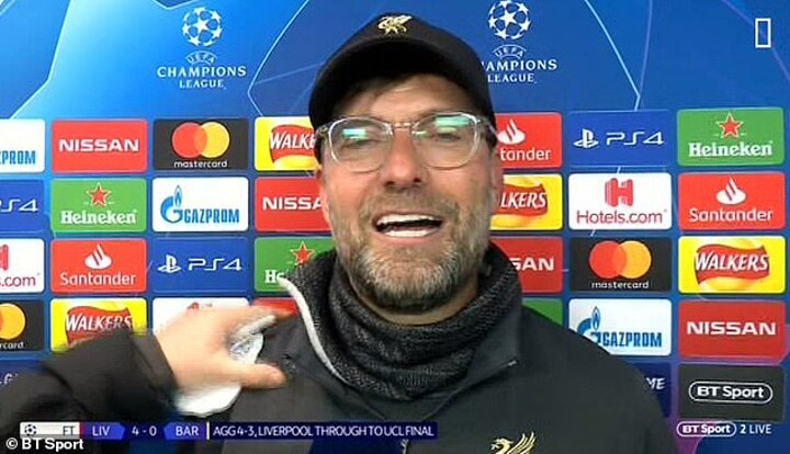 On a night that will go down in Anfield history, Liverpool overturned a 3-0 deficit to beat Barcelona 4-0 and reach the Champions League final, and Klopp let everyone know how he really felt.
