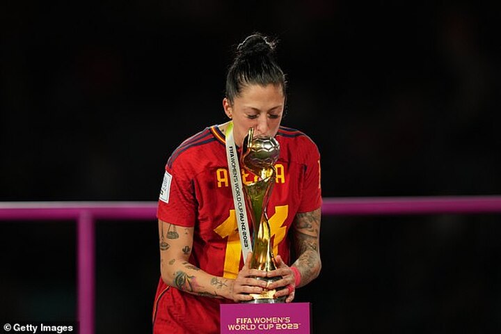 The victorious Spanish stars stepped onto a podium after their triumph over the Lionesses at Stadium Australia to collect their gold medals from FIFA president Gianni Infantino, after they beat England 1-0 in today's final.