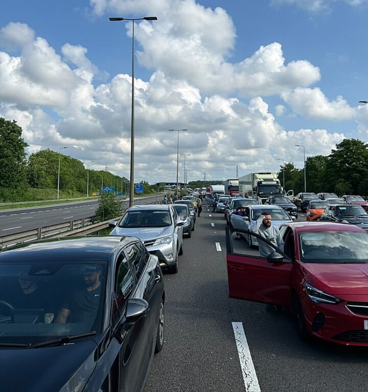 'Nothing coming northbound, either. Huge queues. City and United fans out of their cars trying to figure out what's going on.'