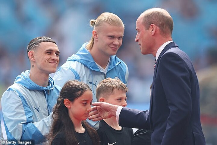 Phil Foden looked delighted as he shook hands with William as they waited anxiously for the game to begin.