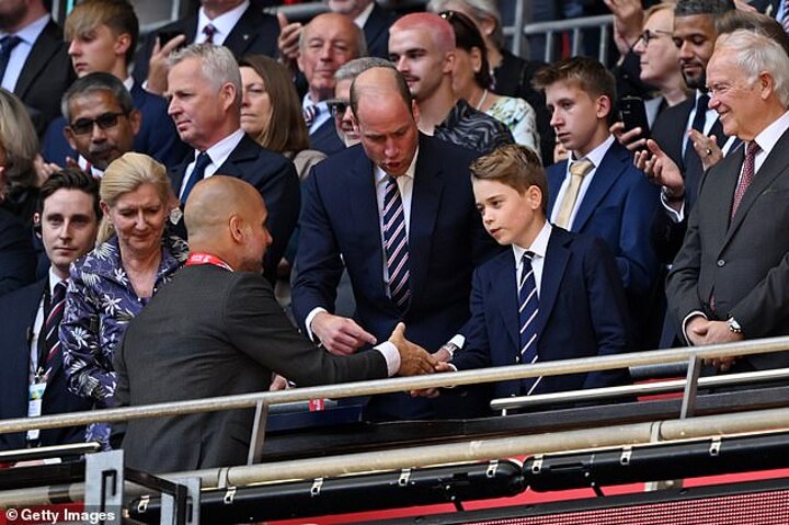 The Prince of Wales awarded the runners-up medals to members of the City squad, with George smiling as he shook hands with manager Pep Guardiola.