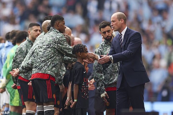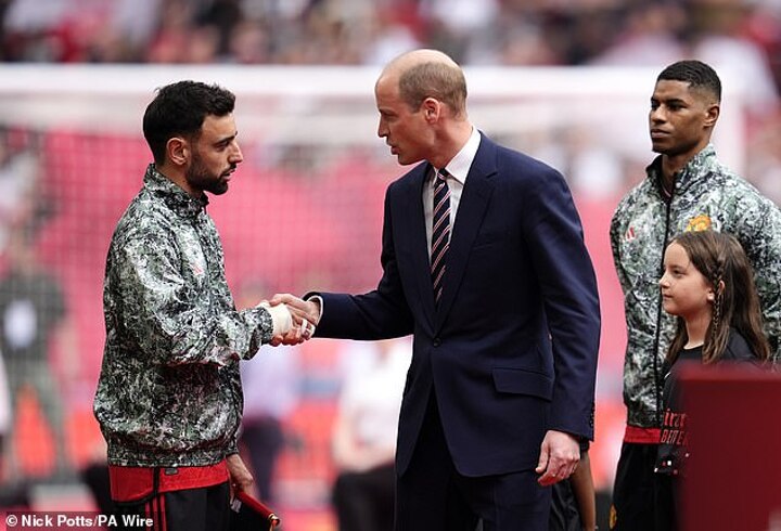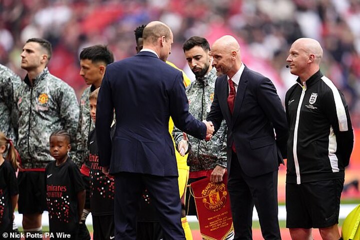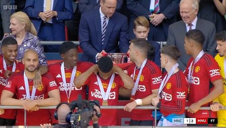 William, who is the Football Association's president, then handed medals to the jubilant United team, including captain Bruno Fernandes and manager Erik Ten Hag.