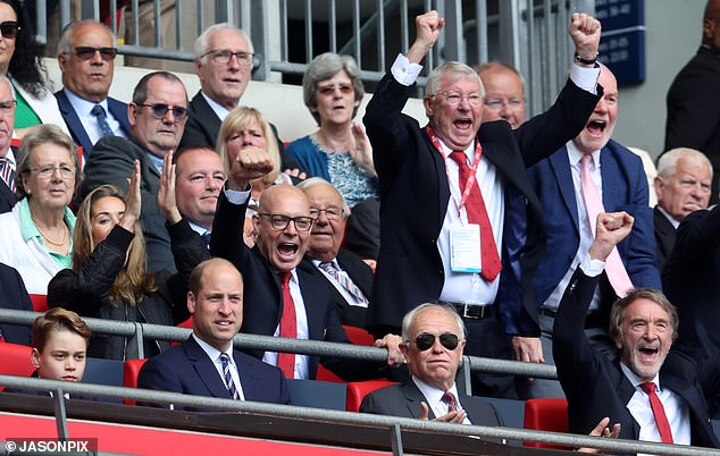 Sitting alongside them in the box, Manchester United bosses Sir Jim Ratcliffe and Avram Glazer could be seen cheering wildly alongside legendary manager Sir Alex Ferguson.