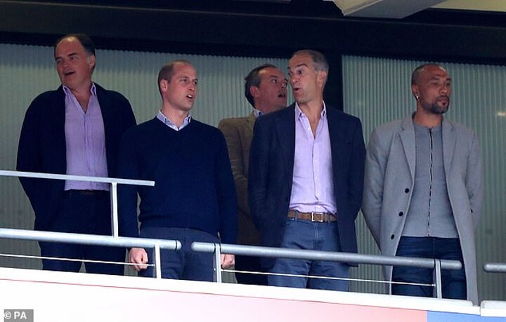 Father-of-three William, 36, dressed down for the occasion in a navy jumper over a pale blue shirt, which he teamed with dark blue chinos.