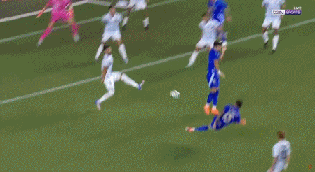 To everyone’s surprise, the first real chance of the game fell to Antonetti, who stole the ball from Messi in his own half and unleashed a 60-yard strike that forced Dibu Martínez to scramble back and save it right on the line.