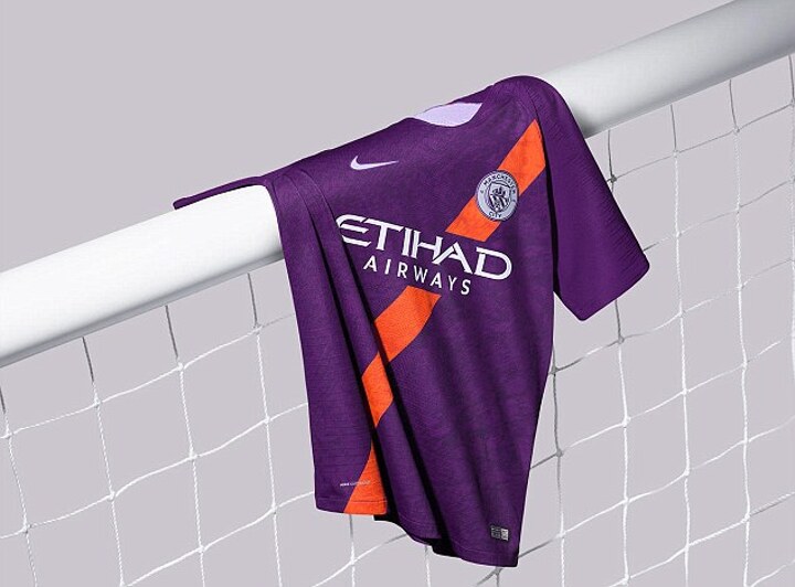 Manchester City have released their new third kit for the 2018-19 season and its purple and orange design draws on retro City kits with its striking sash.