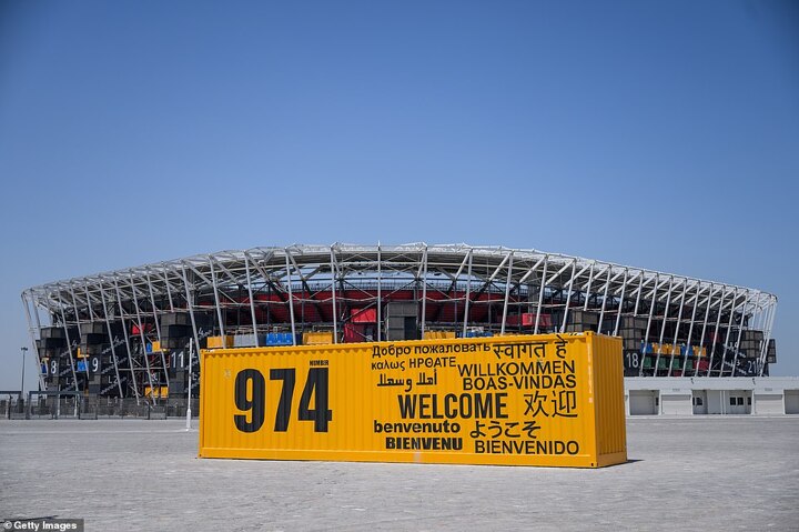 In a first for the World Cup, this stadium has been made from 974 shipping containers and other materials that can easily be dismantled after the tournament finishes.