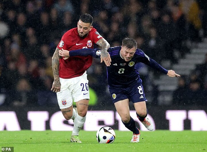 The Scotland talisman was unable to make it eight goals in eight qualification games. The midfielder had a quiet game by his own standards but his dangerous corner was eventually put through his own goal by Ostigard.