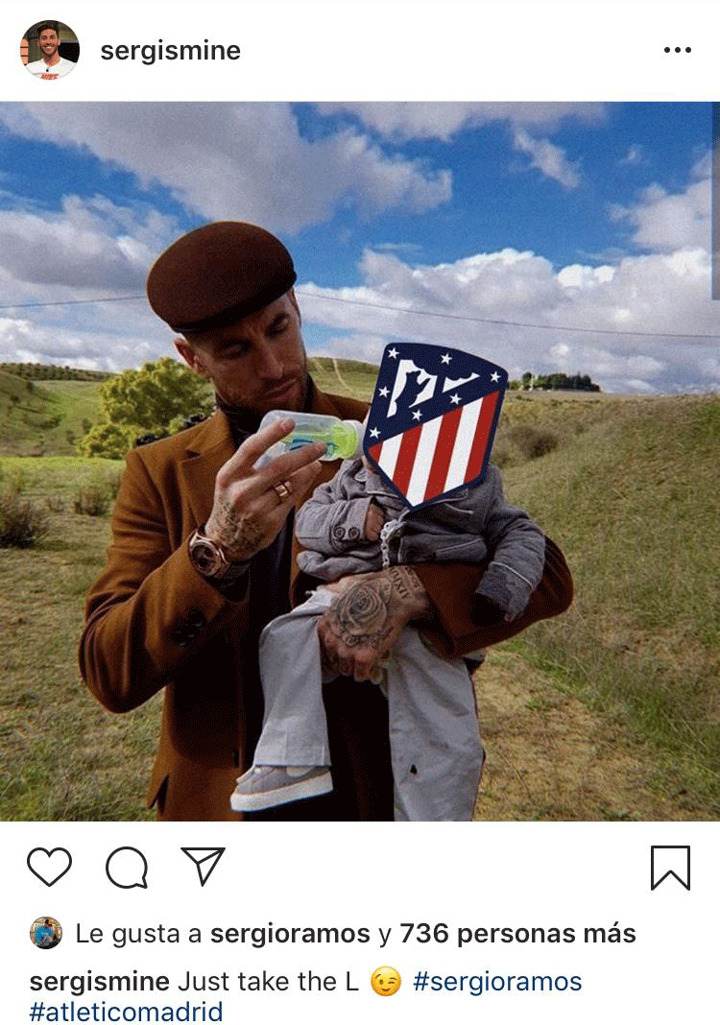 Real Madrid's 3-1 victory over Atletico has been celebrated around the world by their fans, with one supporter sharing a meme that showed Sergio Ramos bottle-feeding a baby with an Atleti badge over its face.