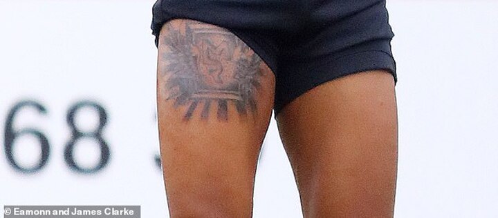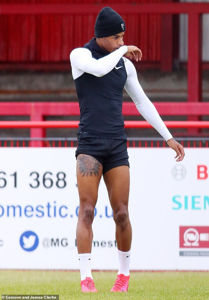 The England international's new ink was spotted for the first time as he was put through his paces at Altrincham FC's ground.