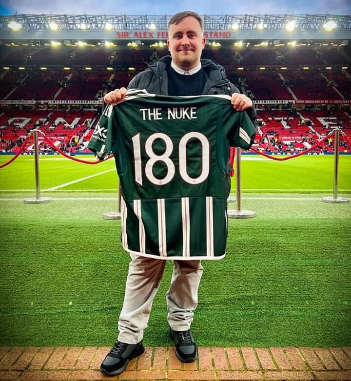 United supporter Littler, who reached the World Darts Championship final earlier this month, was gifted a United shirt with his nickname ‘The Nuke’ and the number 180 belonged on the back.