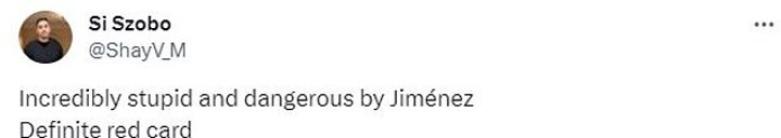'Incredibly stupid and dangerous by Jiménez,' wrote another, adding 'Definite red card'.