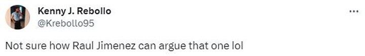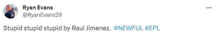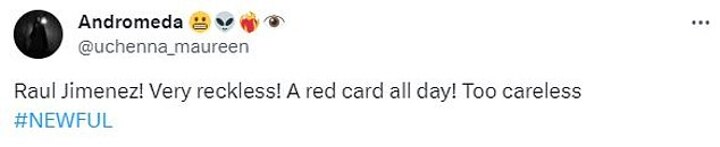 Another noted: 'Raul Jimenez! Very reckless! A red card all day! Too careless'