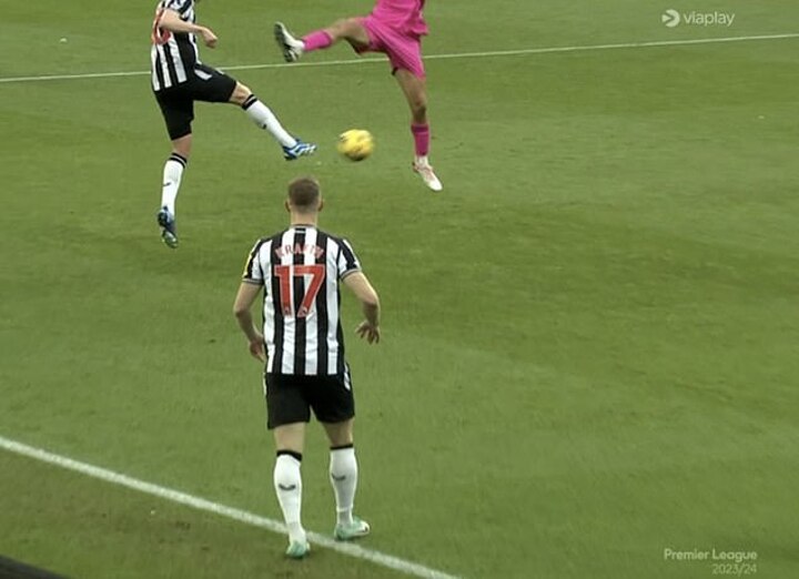 Whilst it appears that Jiminez's foot did not connect with Longstaff, the Fulham player has clearly bodied his Newcastle opponent, which would largely be considered as dangerous play, especially on a second viewing.