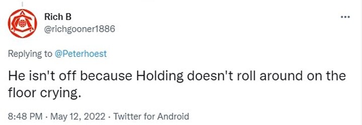 'He isn't off because Holding doesn't roll around on the floor crying,' they stated.