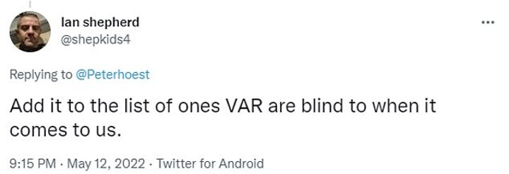 'Add it to the list of ones VAR are blind to when it comes to us,' one supporter wrote on Twitter.